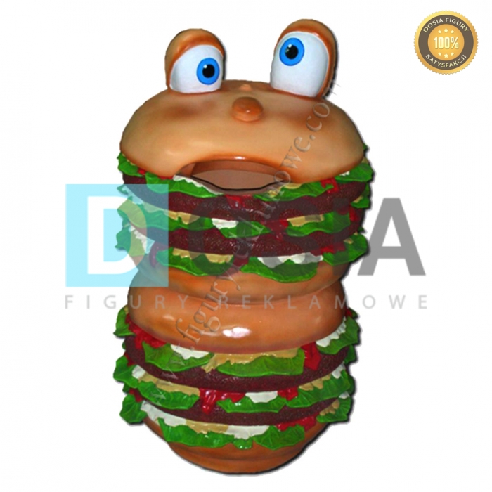 WYKONANIE MATERIAŁ:Obiekt reklamowy w postaci makiety Podwójnego hamburgera wykonany z laminatu szklanego PWS, gdzie nośnikiem są warstwy włókna szklanego a lepiszczem tiksotropowa żywica poliestrowa.