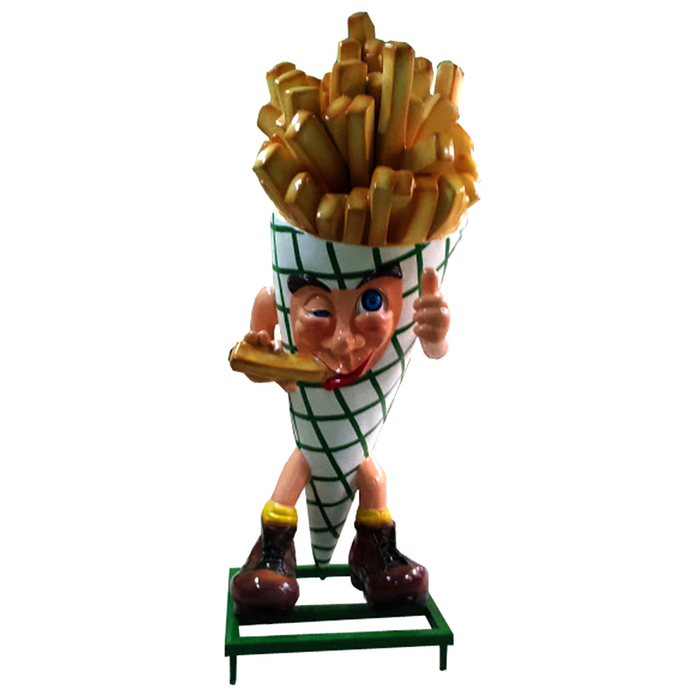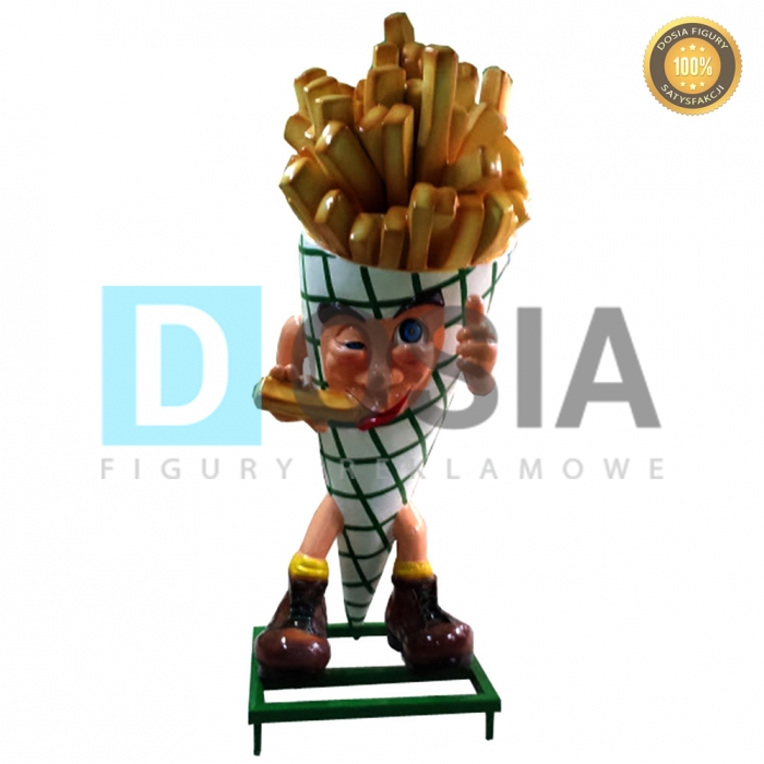 WYKONANIE MATERIAŁ:Obiekt reklamowy w postaci dużej makiety Frytek wykonany z laminatu szklanego PWS, gdzie nośnikiem są warstwy włókna szklanego a lepiszczem tiksotropowa żywica poliestrowa.