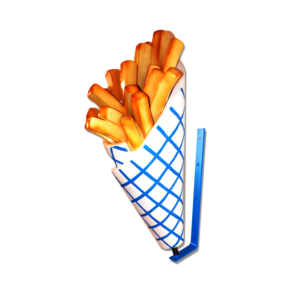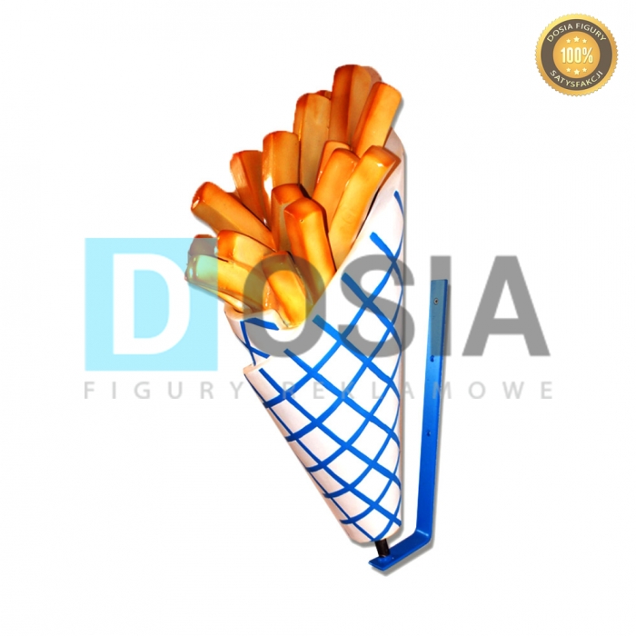 WYKONANIE MATERIAŁ:Obiekt reklamowy w postaci makiety wiszących frytek wykonany z laminatu szklanego PWS, gdzie nośnikiem są warstwy włókna szklanego a lepiszczem tiksotropowa żywica poliestrowa.