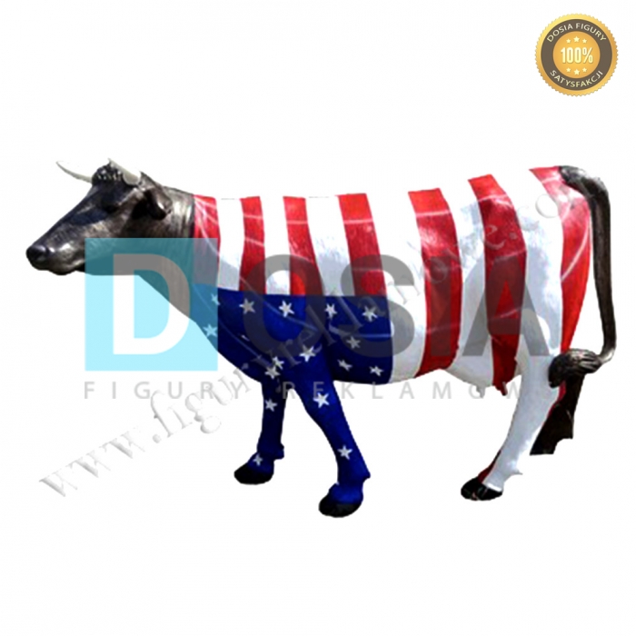 Obiekt reklamowy w postaci dużej makiety KROWY MALOWANEJ NA ŻYCZENIE KLIENTA wykonany z laminatu szklanego PWS, gdzie nośnikiem są warstwy włókna szklanego a lepiszczem tiksotropowa żywica poliestrowa.