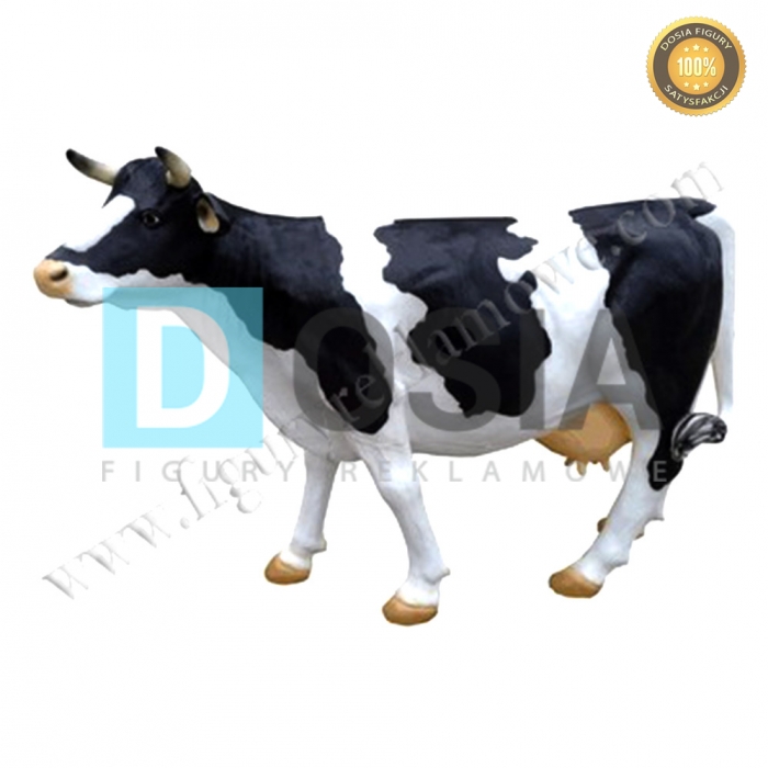 Obiekt reklamowy w postaci dużej makiety KROWY wykonany z laminatu szklanego PWS, gdzie nośnikiem są warstwy włókna szklanego a lepiszczem tiksotropowa żywica poliestrowa.