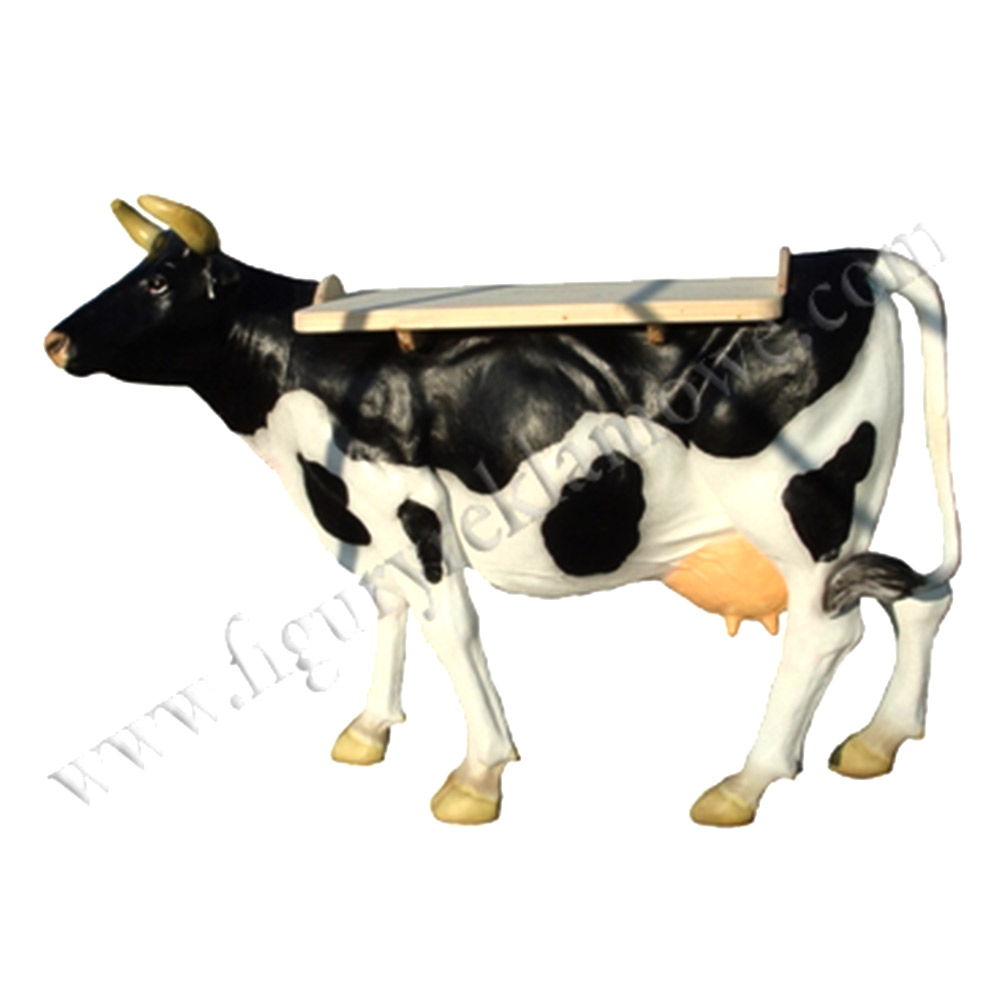 Obiekt reklamowy w postaci dużej makiety KROWY BAR wykonany z laminatu szklanego PWS, gdzie nośnikiem są warstwy włókna szklanego a lepiszczem tiksotropowa żywica poliestrowa.