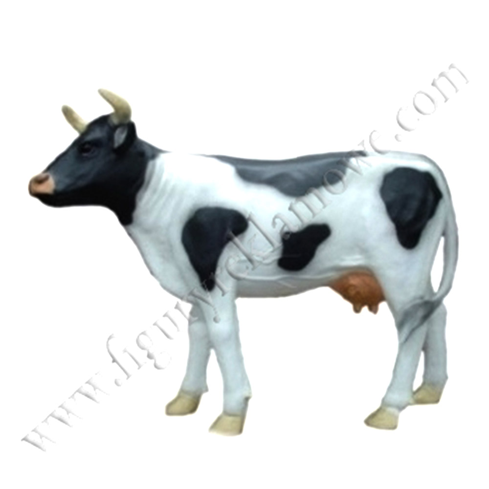 Obiekt reklamowy w postaci makiety KROWY wykonany z laminatu szklanego PWS, gdzie nośnikiem są warstwy włókna szklanego a lepiszczem tiksotropowa żywica poliestrowa.