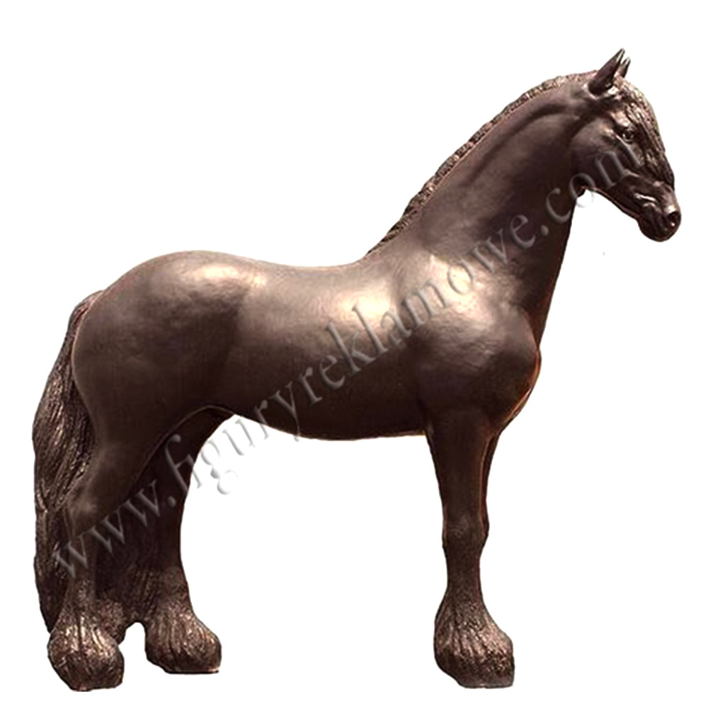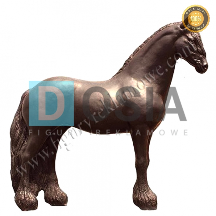 Obiekt reklamowy w postaci dużej makiety Konia fryzyjskiego wykonany z laminatu szklanego PWS, gdzie nośnikiem są warstwy włókna szklanego a lepiszczem tiksotropowa żywica poliestrowa.