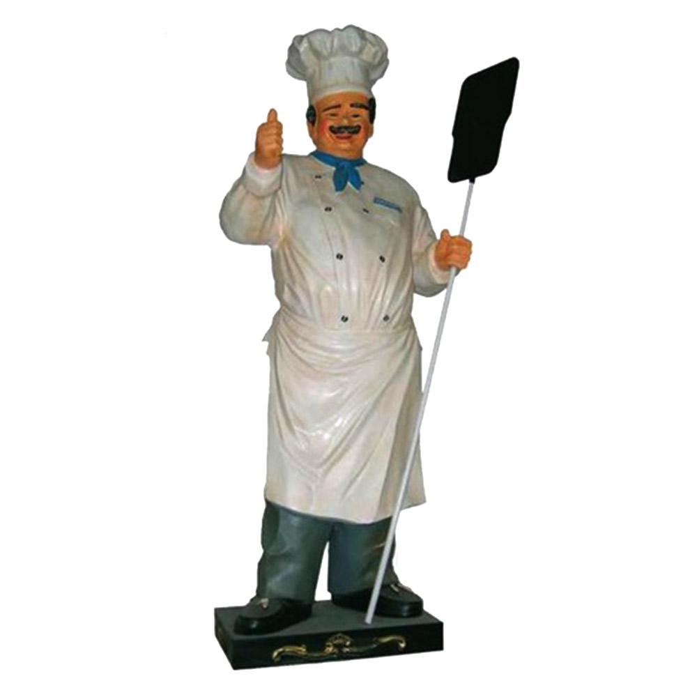 Obiekt reklamowy w postaci makiety Piekarza z drewnianą łopatą .Figura wykona z laminatu szklanego PWS, gdzie nośnikiem są warstwy włókna szklanego a lepiszczem tiksotropowa żywica poliestrowa.