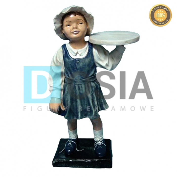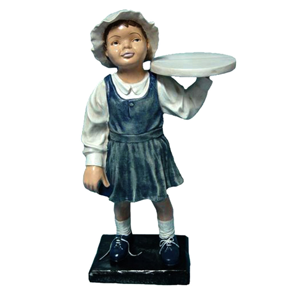 WYKONANIE MATERIAŁ:Obiekt reklamowy w postaci makiety dziewczynki kelnera z tacą do promowania produktów. Odlew mineralno żywiczny.