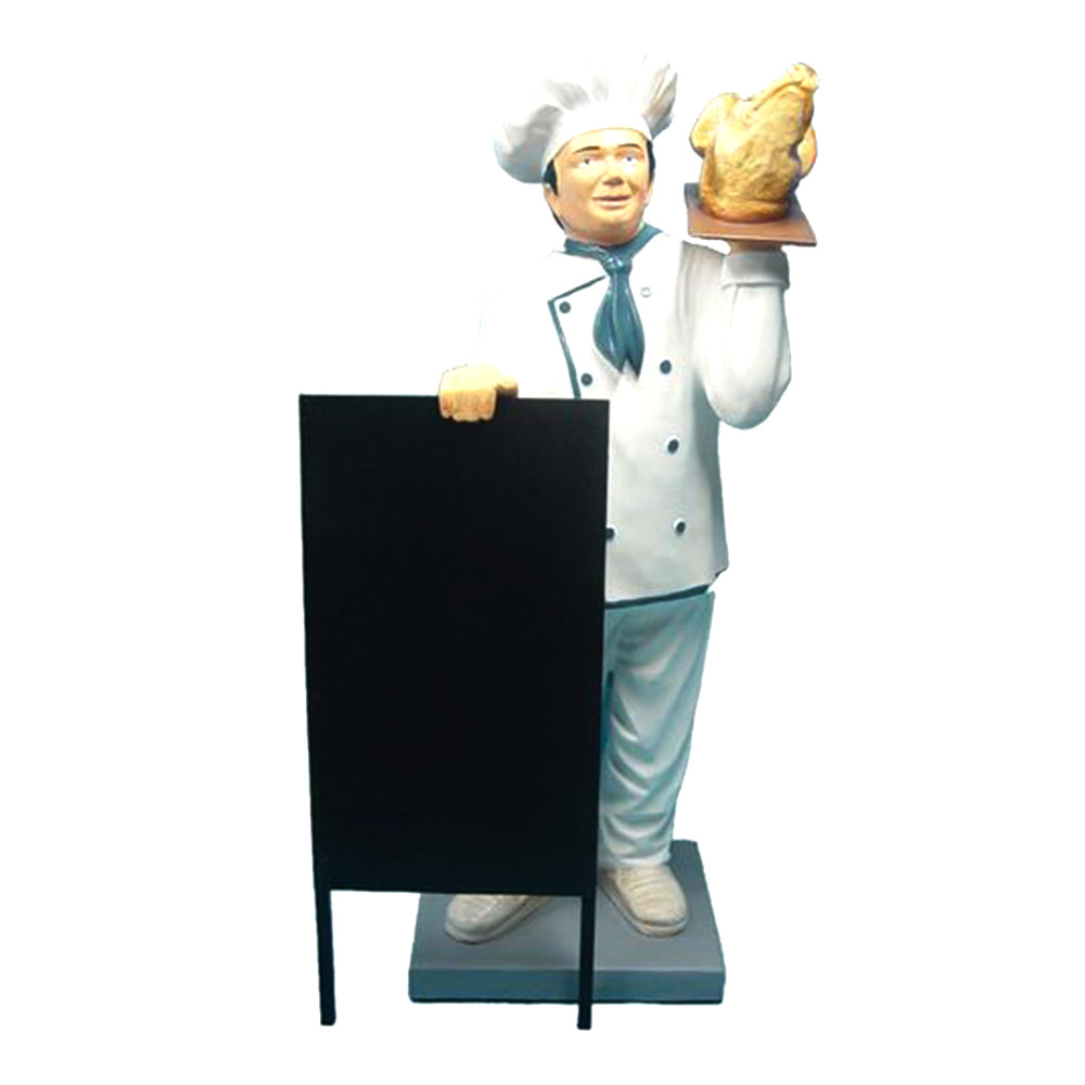 WYKONANIE MATERIAŁ:Obiekt reklamowy w postaci makiety Kelnera z potykaczm do promowania produktów. Figura wykona z laminatu szklanego PWS, gdzie nośnikiem są warstwy włókna szklanego a lepiszczem tiksotropowa żywica poliestrowa.