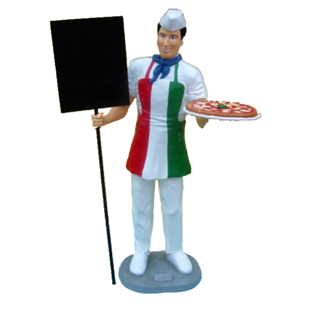 WYKONANIE MATERIAŁ:Obiekt reklamowy w postaci makiety pizzermana figura wykona z laminatu szklanego PWS, gdzie nośnikiem są warstwy włókna szklanego a lepiszczem tiksotropowa żywica poliestrowa.