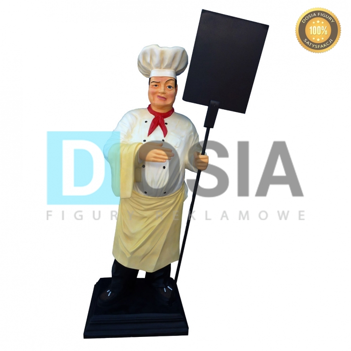 WYKONANIE MATERIAŁ:Obiekt reklamowy w postaci makiety Kucharza z łopatą.Figura wykona z laminatu szklanego PWS, gdzie nośnikiem są warstwy włókna szklanego a lepiszczem tiksotropowa żywica poliestrowa.