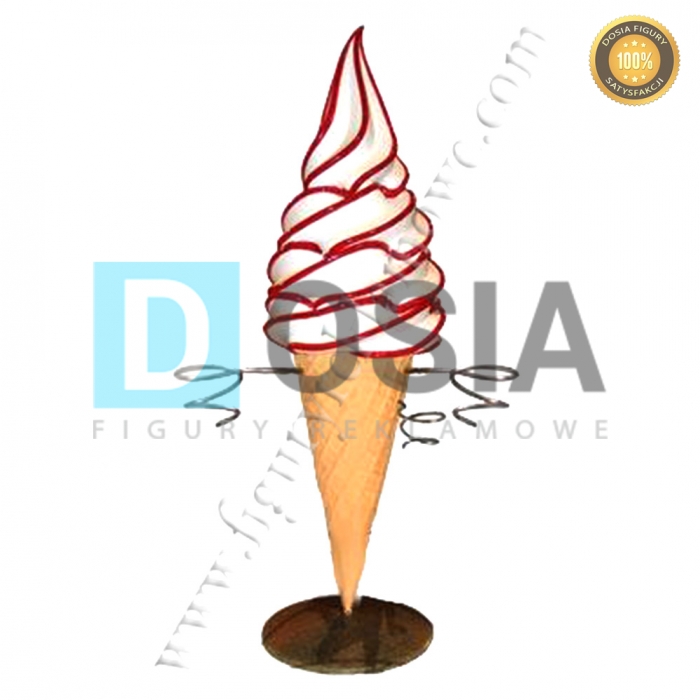MATERIAŁ:Obiekt reklamowy w postaci makiety podajnika do lodów wykonany z laminatu szklanego PWS, gdzie nośnikiem są warstwy włókna szklanego a lepiszczem tiksotropowa żywica poliestrowa.
