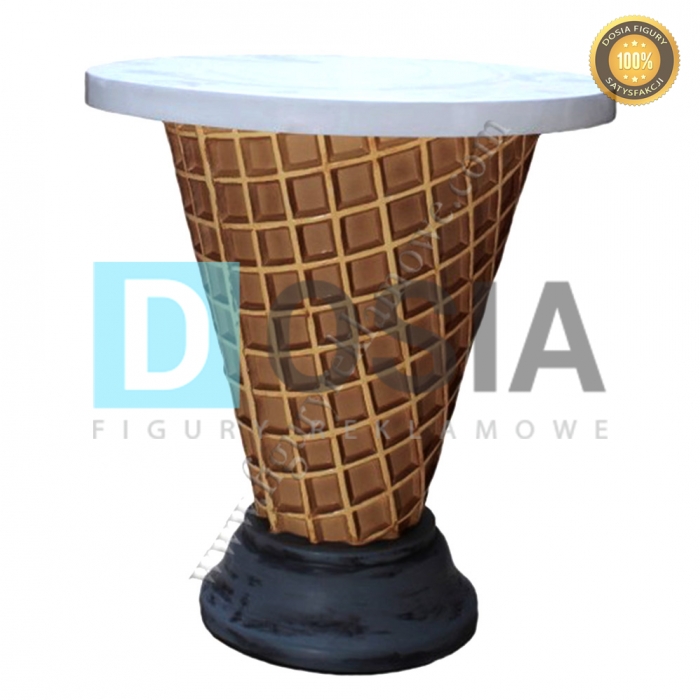 MATERIAŁ: obiekt reklamowy w postaci makiety stolika z laminatu szklanego PWS, gdzie nośnikiem są warstwy włókna szklanego a lepiszczem tiksotropowa żywica poliestrowa.