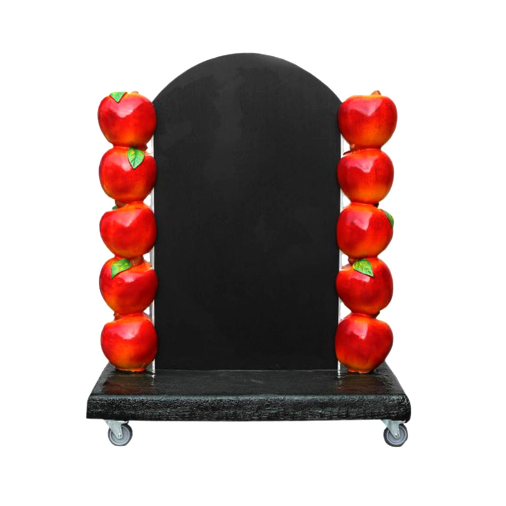 WYKONANIE MATERIAŁ:Obiekt reklamowy w postaci makiety jabluszkowego potykacza na kółkach. Figura wykona z laminatu szklanego PWS, gdzie nośnikiem są warstwy włókna szklanego a lepiszczem tiksotropowa żywica poliestrowa.