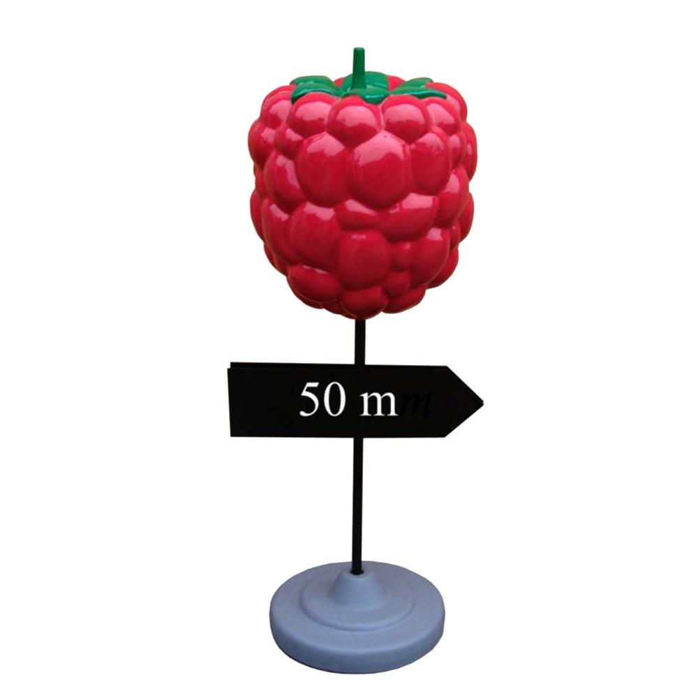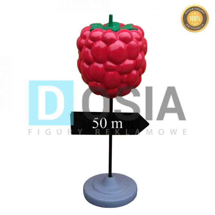 WYKONANIE MATERIAŁ:Obiekt reklamowy w postaci makiety maliny drogowskazu .Figura wykona z laminatu szklanego PWS, gdzie nośnikiem są warstwy włókna szklanego a lepiszczem tiksotropowa żywica poliestrowa.