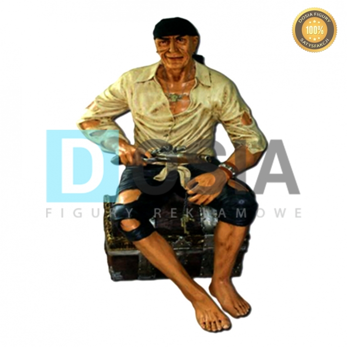 Obiekt reklamowy w postaci makiety PIRATA NA SKRZYNI .Figura wykona z laminatu szklanego PWS, gdzie nośnikiem są warstwy włókna szklanego a lepiszczem tiksotropowa żywica poliestrowa.