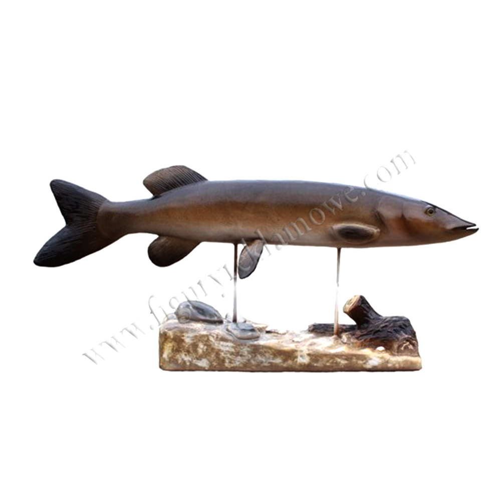 WYKONANIE MATERIAŁ:Obiekt reklamowy w postaci dużej makiety SZCZUPAKA wykonany z laminatu szklanego PWS, gdzie nośnikiem są warstwy włókna szklanego a lepiszczem tiksotropowa żywica poliestrowa.