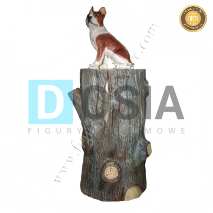Do zaoferowania mamy dużą, ręcznie wykonaną i malowaną figurę reklamową,dekoracyjną przedstawiającą bokserka siedzącego na pniu. Wykonana z laminatu poliestrowo szklanego (fiberglass) w 4 warstwowej technice sandwich.Figura pomalowana jest bezpiecznymi ekologicznymi farbami akrylowymi.