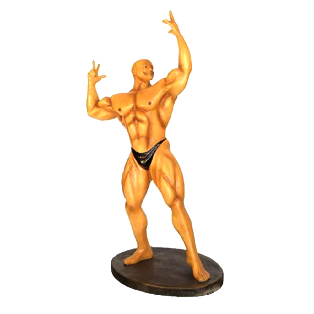 Do zaoferowania mamy super dużą dekoracyjną ręcznie wykonaną i malowaną figurę reklamową, przedstawiającą kulturystę. Wykonany z laminatu poliestrowo szklanego (fiberglass) w 4 warstwowej technice sandwich. Nasz kulturysta pomalowany jest bezpiecznymi ekologicznymi farbami akrylowymi.