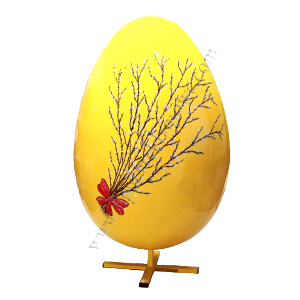 Obiekt reklamowy w postaci makiety Dużego jaja wykonanego z laminatu szklanego PWS, gdzie nośnikiem są warstwy włókna szklanego a lepiszczem tiksotropowa żywica poliestrowa.