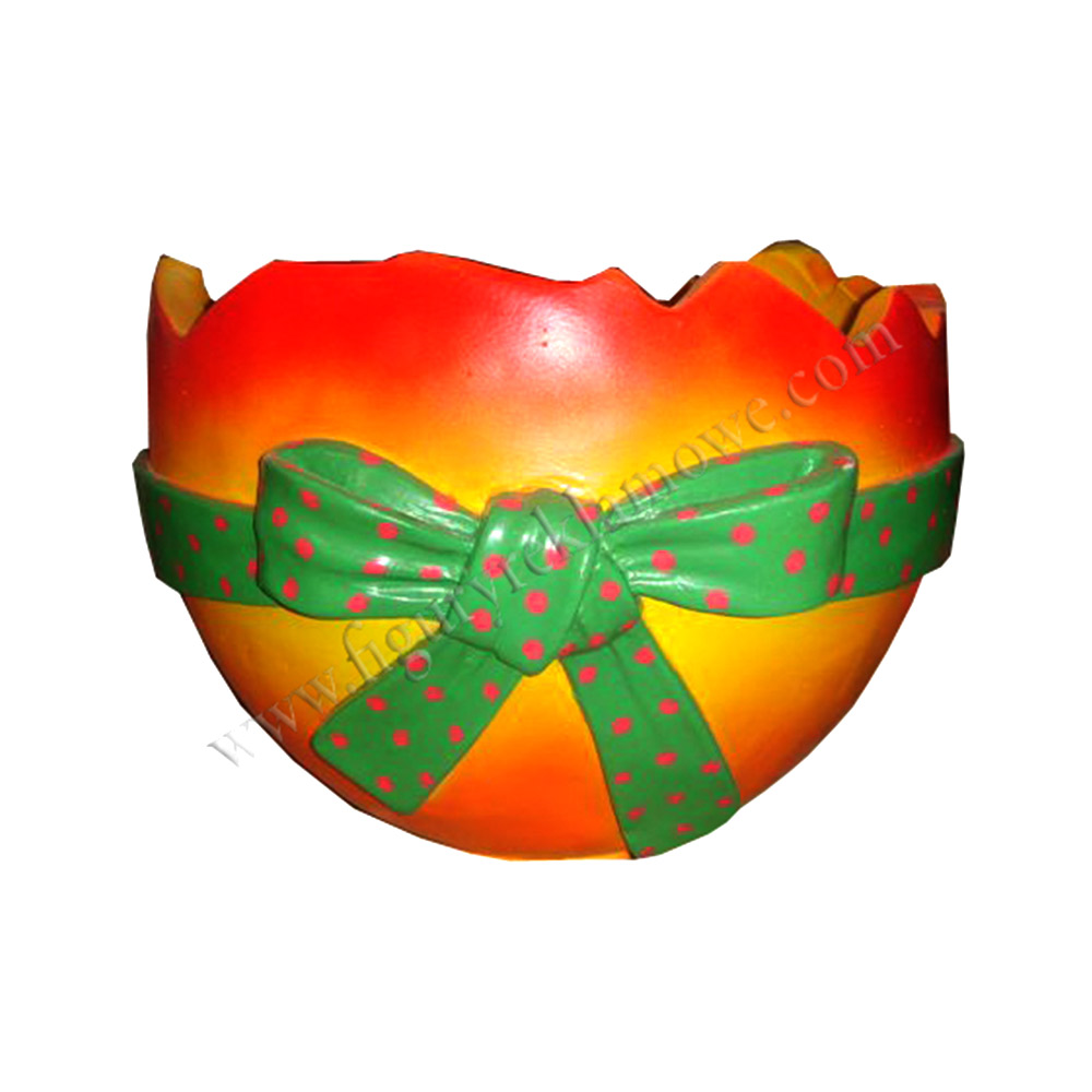 Obiekt reklamowy w postaci makiety Skorupy jaja wykonanego z laminatu szklanego PWS, gdzie nośnikiem są warstwy włókna szklanego a lepiszczem tiksotropowa żywica poliestrowa.