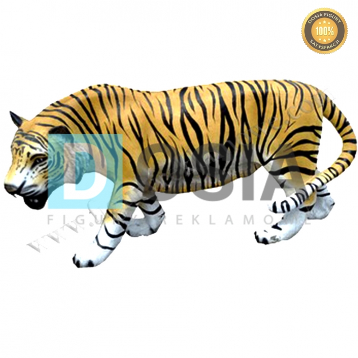 Obiekt reklamowy w postaci dużej makiety TYGRYSA wykonany z laminatu szklanego PWS, gdzie nośnikiem są warstwy włókna szklanego a lepiszczem tiksotropowa żywica poliestrowa.