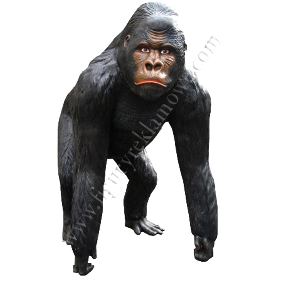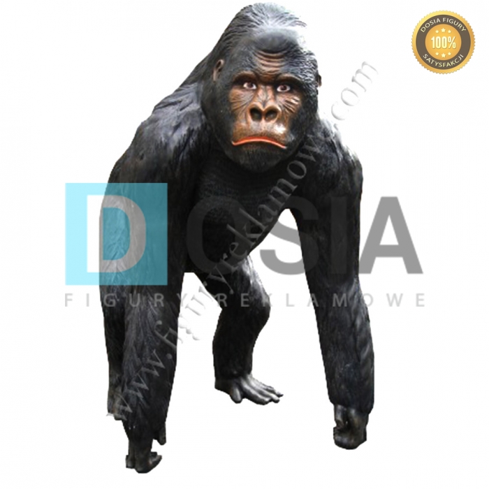 Obiekt reklamowy w postaci dużej makiety GORYLA wykonany z laminatu szklanego PWS, gdzie nośnikiem są warstwy włókna szklanego a lepiszczem tiksotropowa żywica poliestrowa.